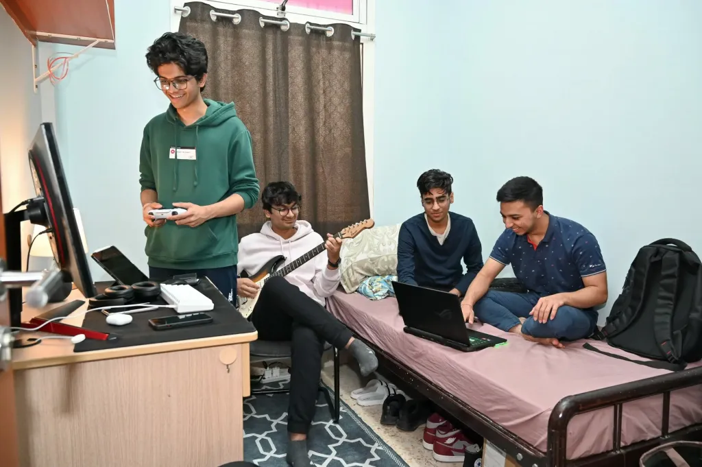 There are four hostel blocks for boys and two blocks for girls. Each Hostel is provided with a resident warden and other required maintenance staff. Hostels are Wi-Fi enabled with rooms that are fully air-conditioned and furnished with study tables, chairs, single beds, and wardrobes. Separate mess is available for boys and girls which serves both vegetarian and non-vegetarian food.